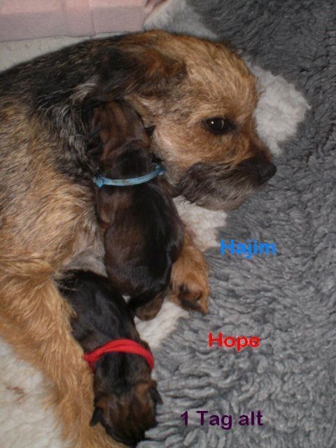 Aus Queen’s letztem Wurf habe ich mir eine sehr schöne kleine blue and tan Hündin behalten. Sie ist sehr temperamentvoll und hat Spaß an Agility. Mit Candy mache ich es nur just for fun, da sie für die Zucht bestimmt ist und somit immer ein halbes Jahr ausfallen würde. Sie hat die BH mit Pravour bestanden. Ich finde das ist auf alle Fälle wichtig. Sie ist eine supertolle Mantrailerin. Diesen Sport kann sie immer ausüben, auch wenn sie trächtig ist. 2012 waren wir auf einem Mantrail-Seminar in der Schweiz mit Trainern von der Polizei und die waren begeistert wie toll sie in diesen Alter schon sucht und auch findet! Aus ihren zweiten Wurf habe ich die kleine red-grizzle Hündin Hope behalten. Sie soll in die großen Fußstapfen ihrer Urgroßmutter Doreen treten.